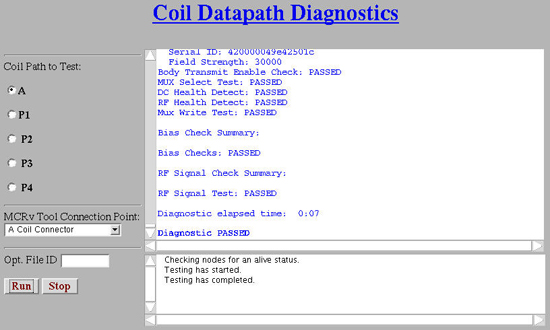 Diagnostics >> System Function >> RF >> Coil Datapath Diagnostics