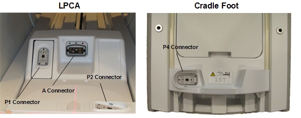 P2 and P4 are connection sockets on top of the cradle. The PA-Mux multiplexer box is located behind the left side covers of the table (see Figure 7).