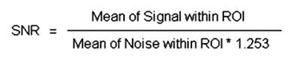 Note:The SNR calculation uses the MEAN of the signal image and MEAN of the noise image.