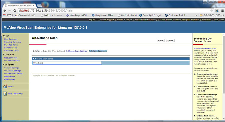 /opt/NAI/LinuxShield/bin/nails passwdto configure password for nails account. - Configure VSEL using browser at https://<system IP address>:55443/.