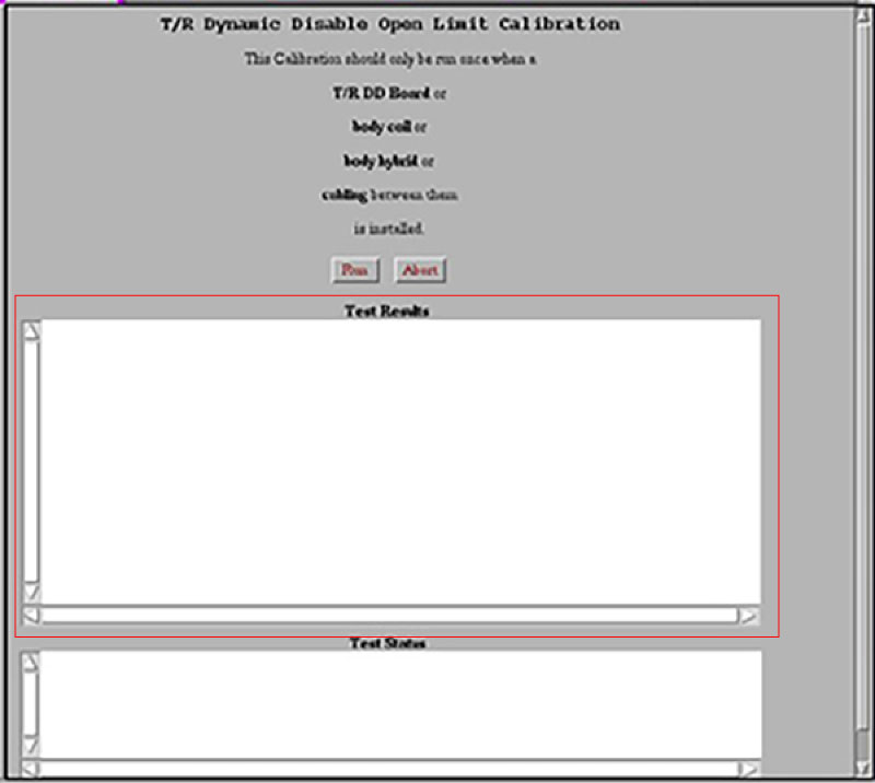 Calibrates the open circuit fault detection levels of the dynamic disable drivers in the driver module. Do this procedure after system installation, driver module replacement, body coil replacement, body hybrid replacement, or replacement of cabling between any of the previously listed devices.