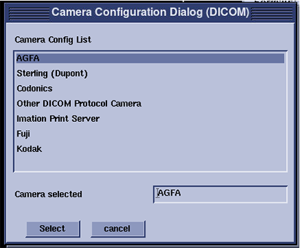 Figure 5. Camera Configuration Dialog (DICOM) window