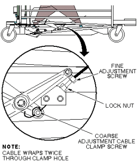 Note: If the adjustment screw does not provide enough range for adjustment, coarse adjustment may be made to the cable length where the cable end is clamped into actuator bracket. Fine adjustment will be required after doing a coarse adjustment.
