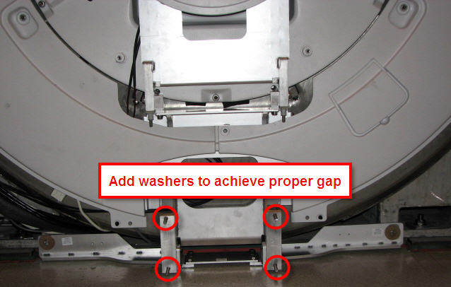 Add or remove washers at the dock assembly and measure until the proper gap is achieved.