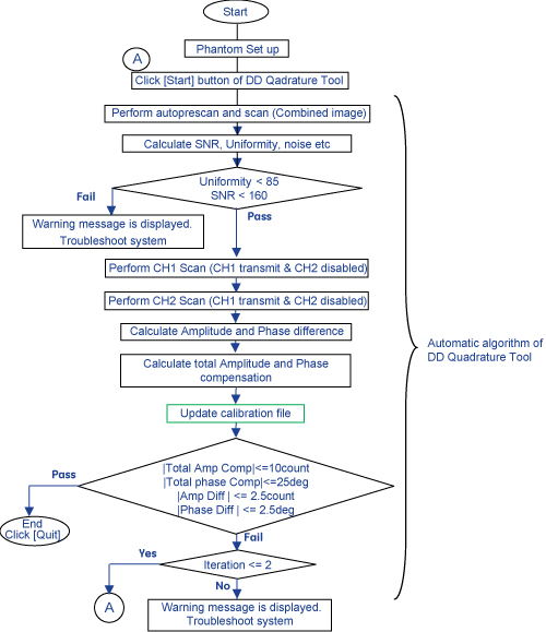 A dual drive system has two transmit channels. The DD (Dual Drive) Quadrature Tool is used to compensate for the amplitude and phase differences in the transmit channels. Amplitude and phase differences between the two channels can begin at the Exciter and be carried right up to the end of the imaging chain which is the body coil transmit. It can also be introduced at any of the intermediate passive components.
