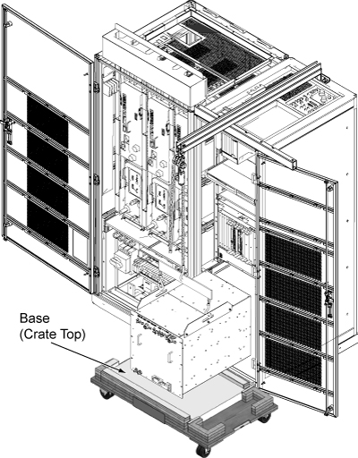 7. After attaching the center sections of the FRU package to the removed FRU unit base, attach the top of the FRU crate to prepare the FRU for return.