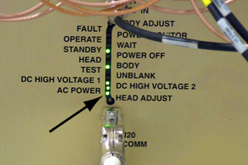 2. RF Amplifier verification: Look at the bank on the front of the RF Amp and make sure that the AC Power LED is off. (See Figure 3).