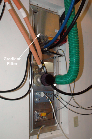 from the equipment room. The thumbscrews on the filter attach to PEM