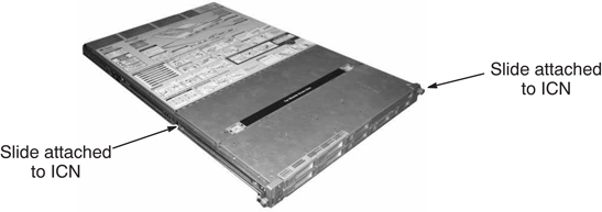 If a Sun 4100 is being replaced with a 4170 or 4170 M2 ICN, the module(s), the attaching brackets, and slides are removed. New brackets, slides, and ICN are installed.
