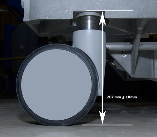 The patient table is aligned vertically to the magnet by adjusting the caster height. However, the caster height must also be checked for uniform loading to ensure levelness.