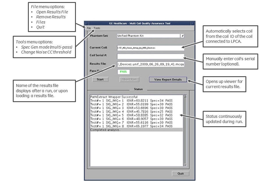 The Multi-Coil Quality Assurance (MCQA) tool simplifies data acquisition and analysis of the signal-to-noise ratio (SNR) for surface coils. It helps detect dead coil elements and develop improved integrated signal-to-noise ratio (ISNR) specifications for all multi-coils independent of scanner instabilities.