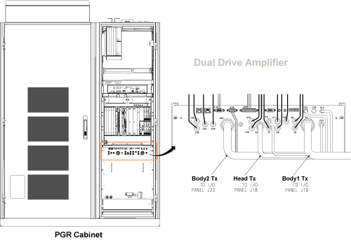 Use this procedure if you have at least 24 inches (61 cm) of clearance on the right side of the PGR cabinet. Otherwise, see Replacement of RF Body or Head Transmit Cable (Without Removing Side Cover).