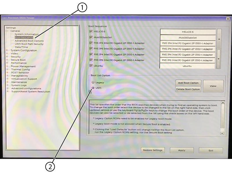 - In the Boot Sequence pane, select UEFI in the Boot List Option area.