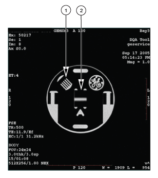 - If the latest exam has its image(s) labeled Axial, the tool has made an early detection of a Z gradient polarity problem from the set of multi-slice images. Check to see if the central bar feature (in Figure 2) moves toward the resolution comb feature as the slice location moves from inferior to superior.