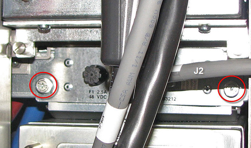 4. Loosen the two screws securing the fan to the cabinet.