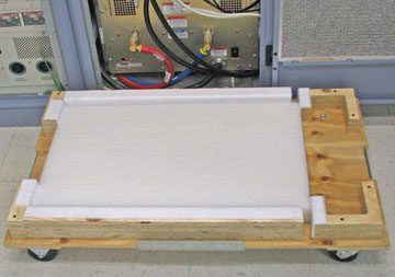- The FRU is packaged in a wooden crate. For the XRFD PS, there are three parts to the FRU crate. Remove the top of the wooden crate and turn it on its base. The XRFD PS being removed can be placed into the top. Roll the top under the XRFD PS and lock the wheels so that the container does not move.