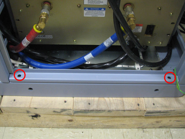 - Before disconnecting any coolant lines on the front of the XRFD unit, shut down the PPMP at the HEC by pressing ▲ and F3 simultaneously. Then, switch the PPMP circuit breaker to OFF.