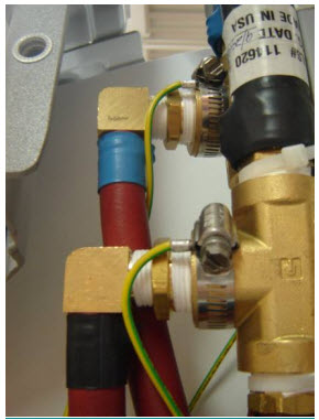 Figure 17. Tie-Wrapping Manifold Hoses to Busbar and Applying Ground WiresFigure 18. Applying Ground Wires by Hose Clamp to Manifold FittingsFigure 19. Final Position of Manifold Hoses