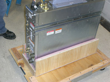 - Attach the center of the FRU package to the removed FRU unit base. Then attach the top of the FRU crate to prepare the FRU for return.