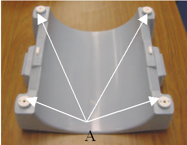The four spring clip connectors are located in the head coil baseplate, under the plastic caps (marked A in the illustration below).