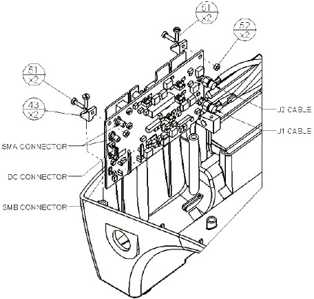 Unplug the SMB RG174 straight cable crimp and the female DC connector on the cable assembly from the TR board. (See Figure 3.)