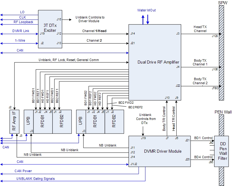 The head transmit circuit routing is identical to that used in 3.0T systems with the 35 kW RF amplifier, and the same components are used. The head transmit circuit is a single drive and does not use dual drive or a DTRSW.