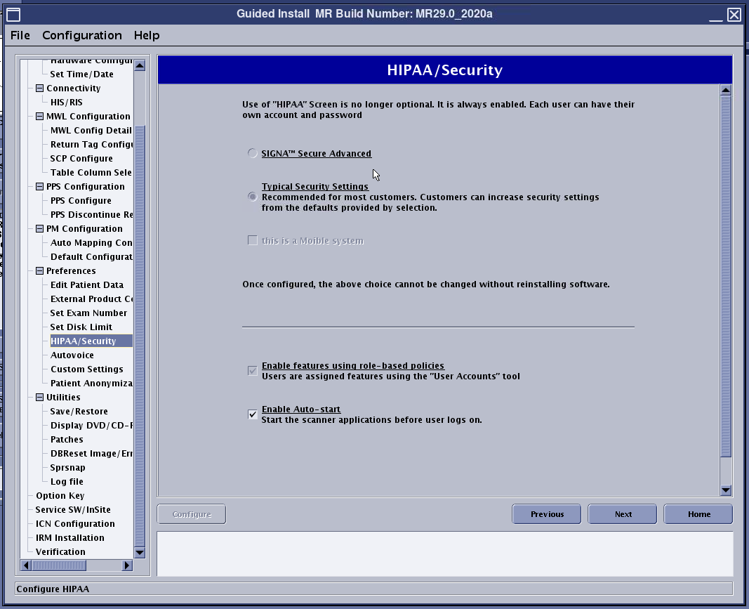 To access HIPAA/security levels, launch Guided Install from the Service Desktop Manager and select the HIPAA/Security tab.