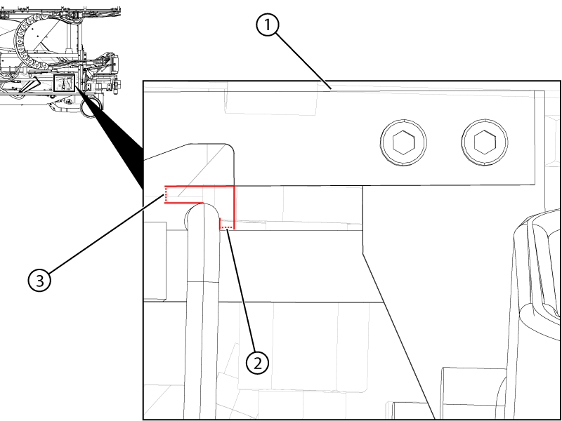 8. Dock the table and position the cradle with the bore end of the cradle flush with the front end of the front bridge.