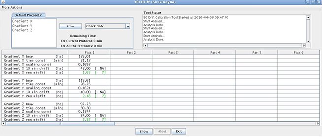 The B0 Drift tool characterizes the B0 drift of a given magnet by monitoring the frequency of the system during a high power scan. The tool’s compensation factor is applied to any scan that affects B0.