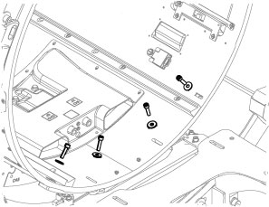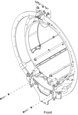 16. Remove the four M6 screws and large glass laminate washers. Remove the body coil mount front assembly.