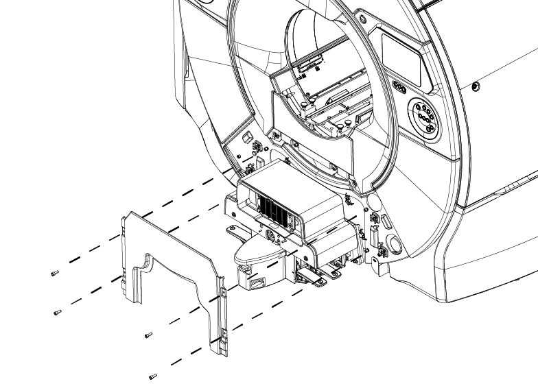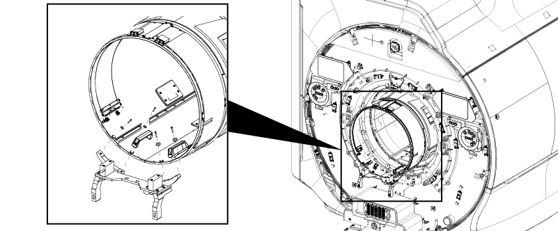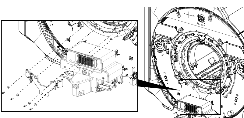 12. At rear end of the magnet, remove four M6 bolts and washers securing the RF body coil.