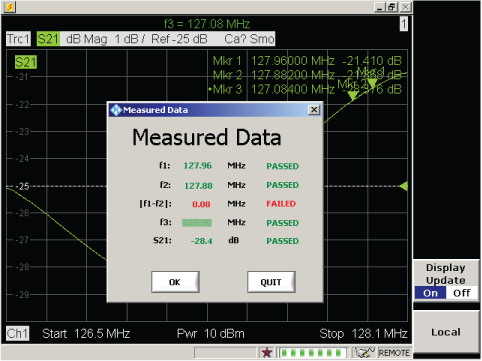 Note: The value in following screen is an example. Check the Pass or fail result.Figure 36. Measured Data (All Pass)