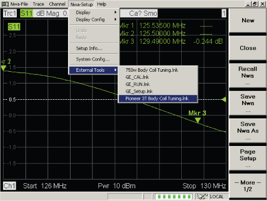 Option Description For ZVL Analyzer (5336593-3) Select Nwa-Setup > External Tools > Pioneer 3T Body Coil Tuning.lnk. Figure 9. Pioneer 3T Body Coil Tuning.lnk