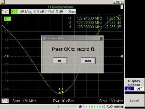 - If calibration of the network analyzer has not been done yet, click [OK] to start the calibration. Then, go to Step 8.