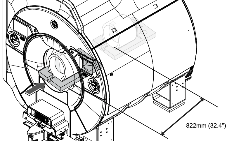 - Place body loader with phantom on the foam support, place them on the bridge, and push them into the magnet center so that front edge of body loader is 822mm (32.4 inches) away from the front edge of the bridge.
