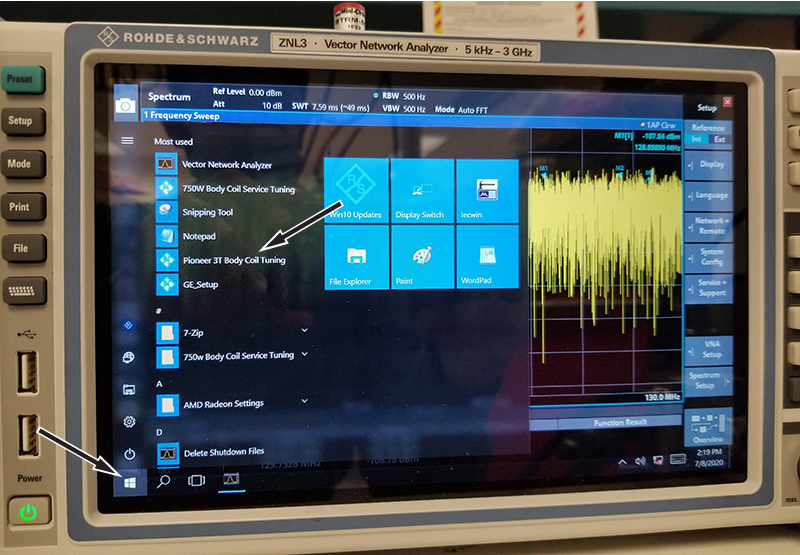 For Vector Network Analyzer (5336593-4) Select the Start menu, and then select Pioneer 3T Body Coil Tuning. Figure 10. Pioneer 3T Body Coil Tuning