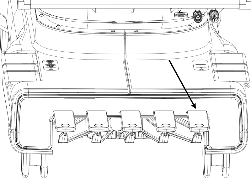 Drop the table into the full down position by depressing the far right pedal located at the rear of the patient table.
