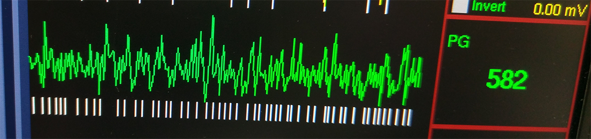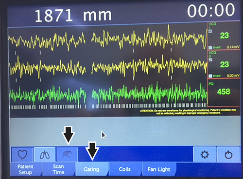 Figure 1. IRD monitor with Gating tab selected , PG graph enabled, and finger probe disconnected