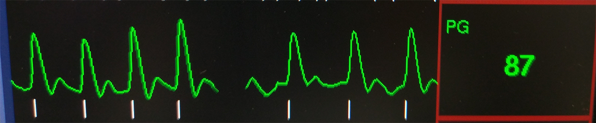 This illustration shows a peripheral pulse line graph when the probe is connected and working properly.