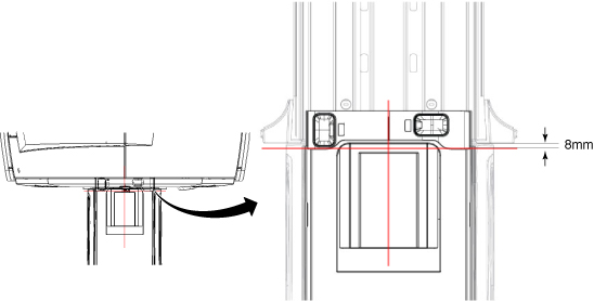 The axial light must align with the cradle joint. The cradle joint end cover must be located 8 mm away from bridge end on each side.