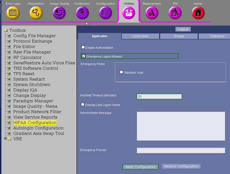 Figure 1. Emergency logon