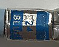 - For the 6 AWG gradient cable (ground lead), blue bands with the printed word BLUE and the number 24 appear on the lug. The single crimp compression is diamond shaped and embossed with the number 24.