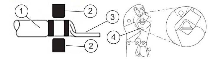 1 Wire 2 Die 3 Lug 4 Crimp tool - As each crimp is made, make sure that: