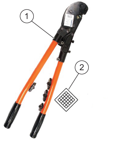 1 Crimp tool 2 Tool creates diamond style crimp - Identify the required lugs for your procedure. Consult the procedure for the correct lugs.