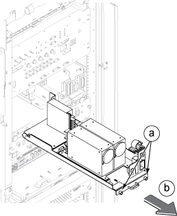 Remove the DPP DC power supply from ISC.- Loosen 2 screws tightening power supply and chassis.