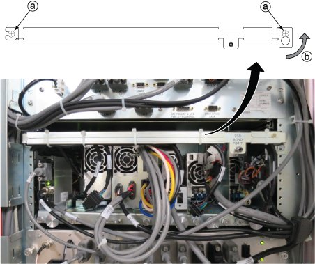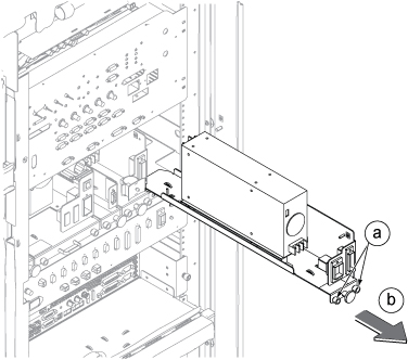 Remove the DCPS for Driver Module tray from ISC.- Loosen 2 screws tightening power supply and chassis.