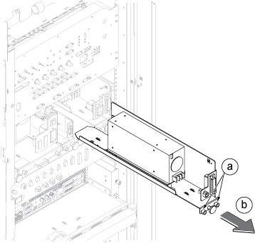 Remove DCPS for Exciter from the ISC.- Loosen 2 screws tightening power supply and chassis.