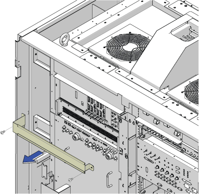 Attach the lifting brackets to both sides of the Dual Drive RF Amp. The lifting brackets can be found in the Dual Drive RF Amp FRU crate. The attachment screws are captive screws and remain with the lifting brackets.