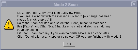 Mode 2 prompts you to enter an image number that generated the most white pixels from the Mode 1 test, and allows you to use the real-time display feature of EPI to loop on that condition for troubleshooting purposes.