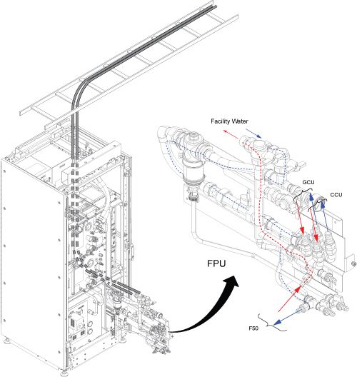 - Open valves of Facility Water and check that there is no water leakage at any hoses connected to FPU.